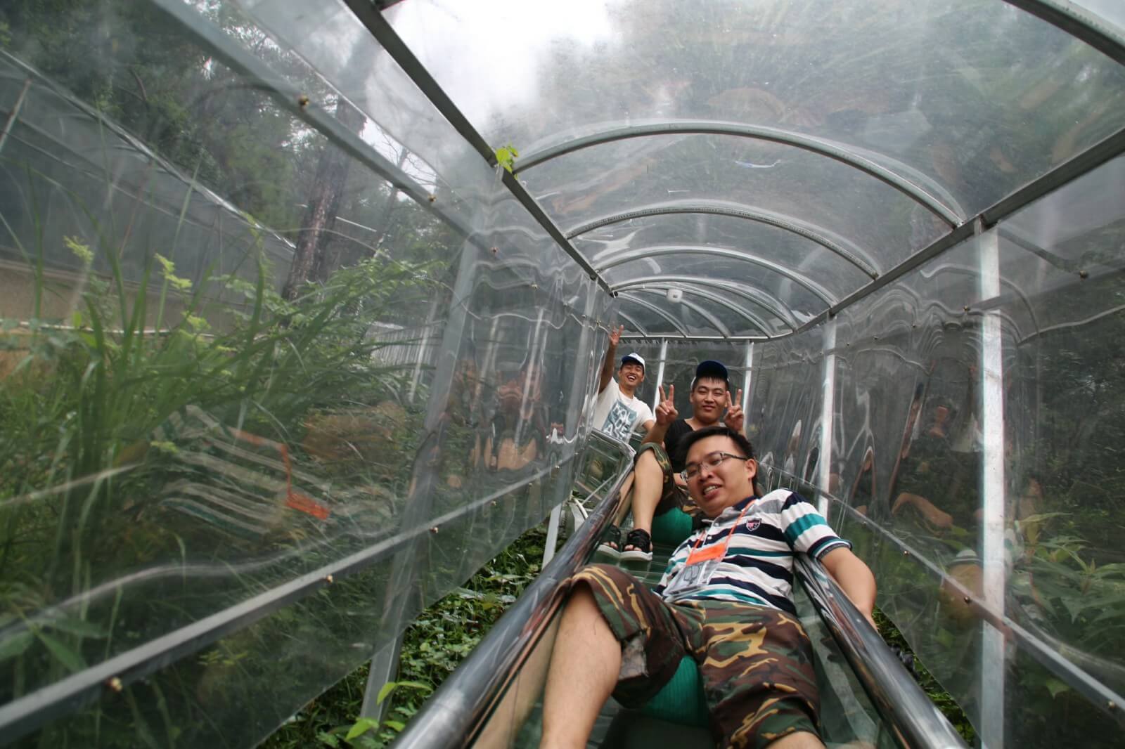 大約經(jīng)過(guò)半小時(shí)的登山,便抵達(dá)了驚魂玻璃橋及與之相依的飛龍滑道,驚魂玻璃橋的空中廊橋全長(zhǎng)接近200米,懸空離地180米左右,對(duì)于有恐高癥的人來(lái)說(shuō),不畏是一處挑戰(zhàn)自我的好地方。不過(guò),再怎么害怕,再通過(guò)全長(zhǎng)達(dá)500多米的飛龍滑道到達(dá)山下之后,也就不存在了,長(zhǎng)長(zhǎng)的滑道可是讓我們重新體驗(yàn)了一把童年的滑梯享受。另外,景區(qū)還設(shè)有水上樂(lè)園、空中漂流及水上拓展項(xiàng)目。