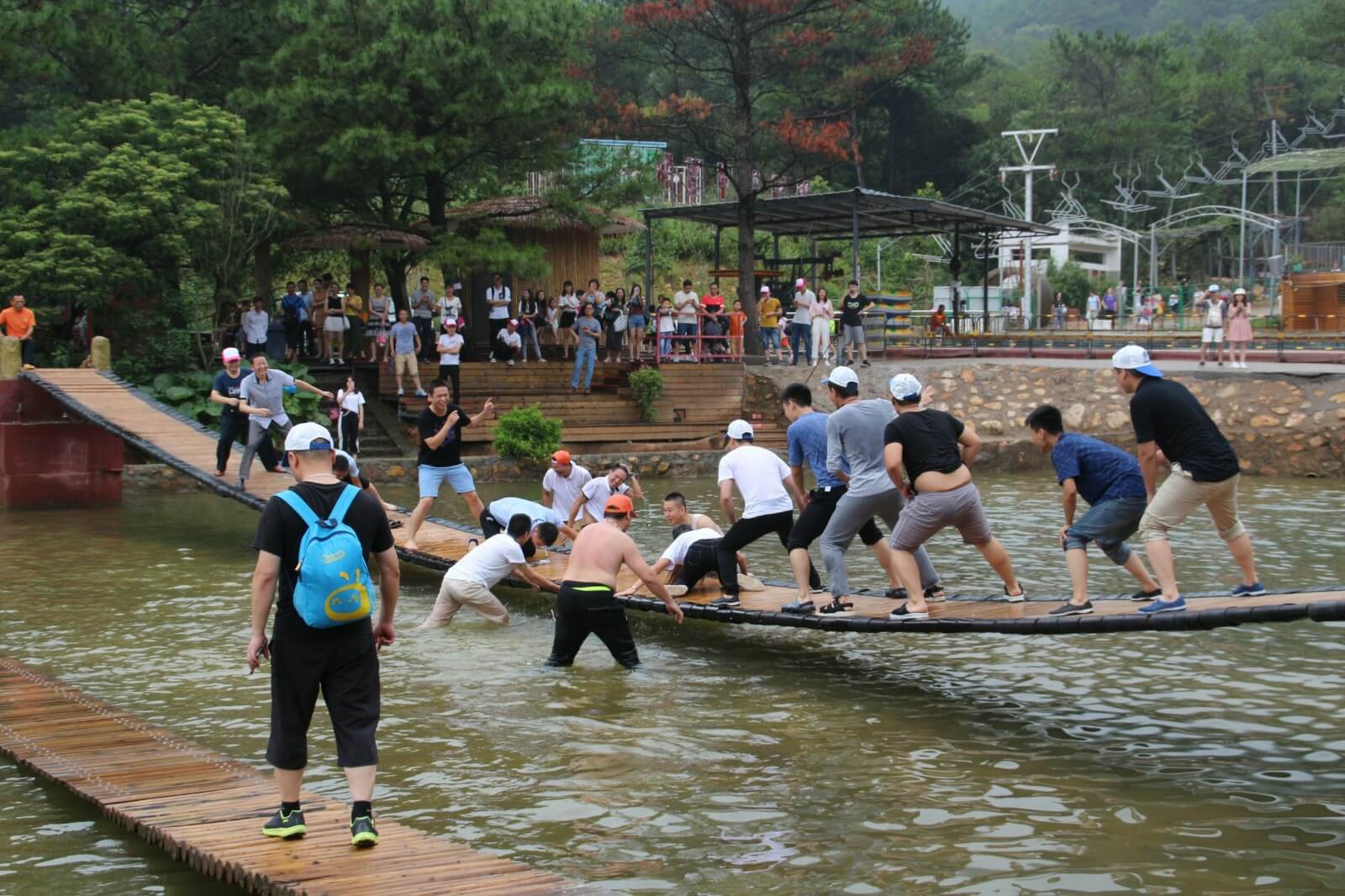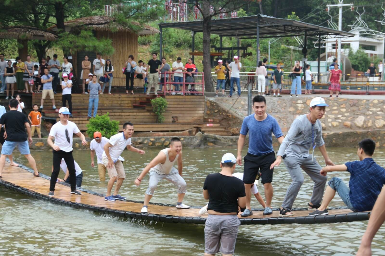 我們懷揣著忐忑與激動(dòng)的心情加入了漂流的隊(duì)伍中,湍急的流水時(shí)而將我們淹沒(méi),時(shí)而將我們拋起,帶著我們?cè)讵M窄的河道橫沖直撞,讓我們親身體驗(yàn)了漂流的刺激。當(dāng)然,河道也有緩沖流域,在這我們可以用水槍及水瓢打水戰(zhàn),除隊(duì)友以外人員均可作為水戰(zhàn)對(duì)手,你一槍,我一瓢,玩得不亦樂(lè)乎。