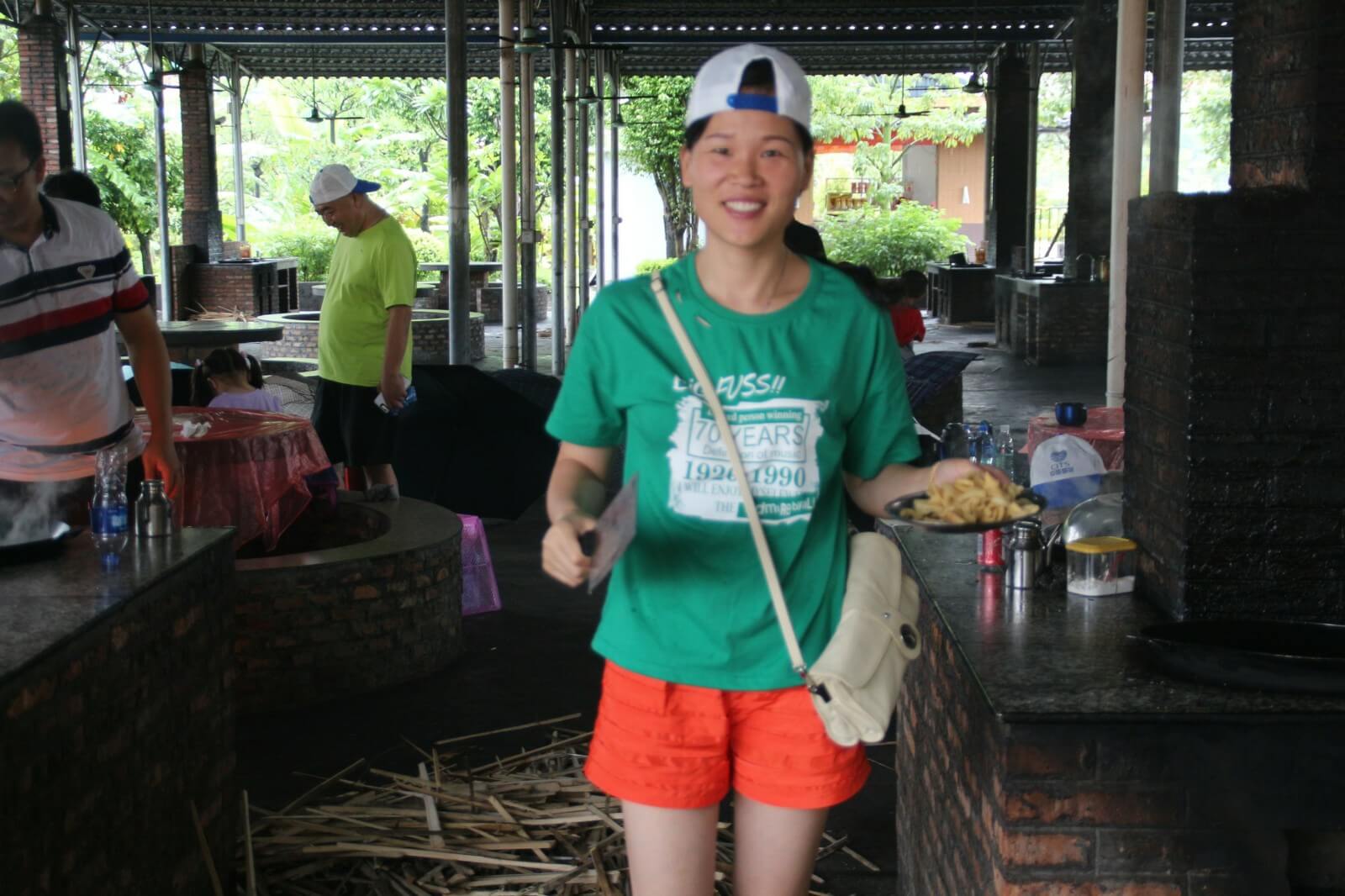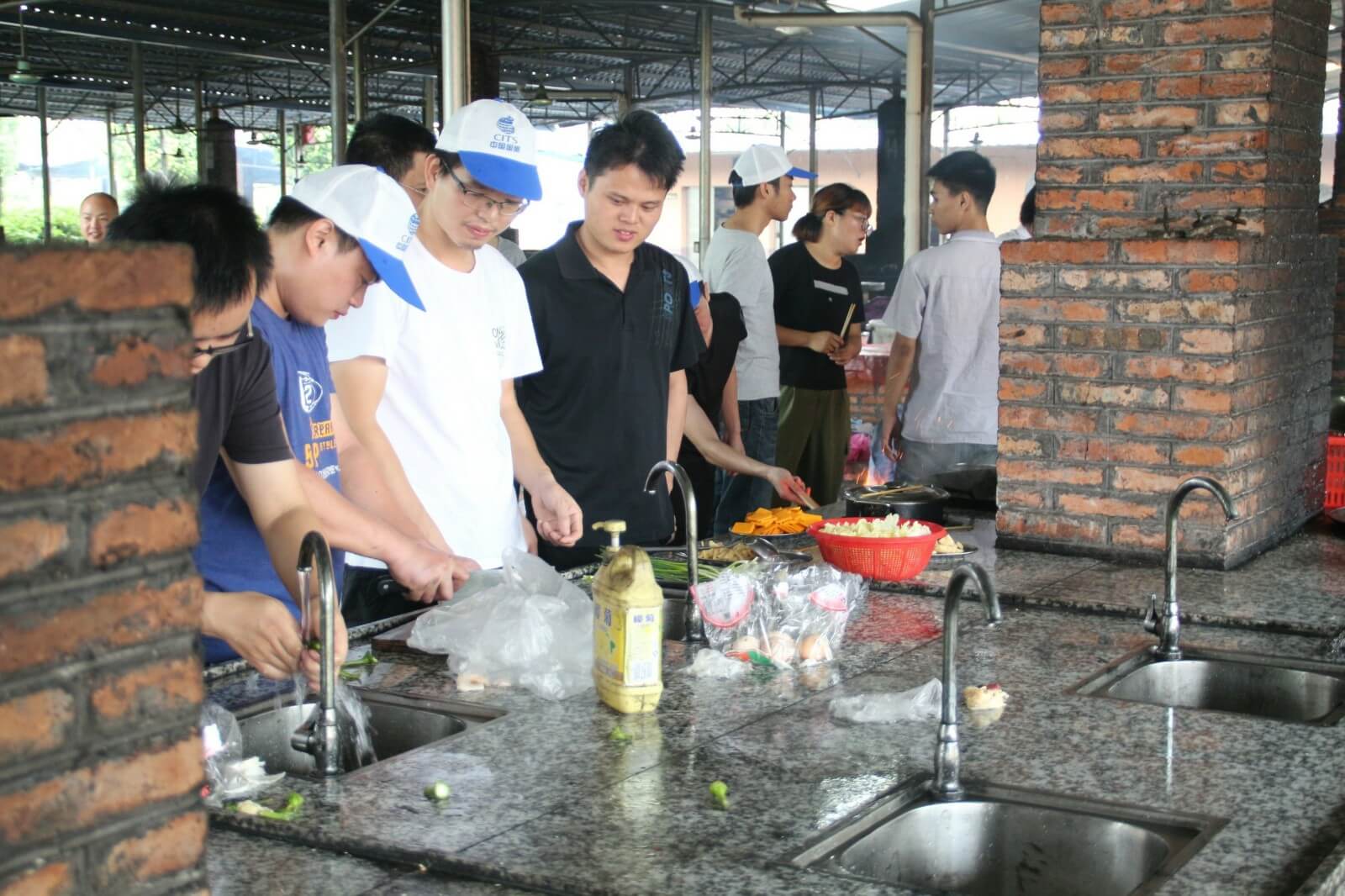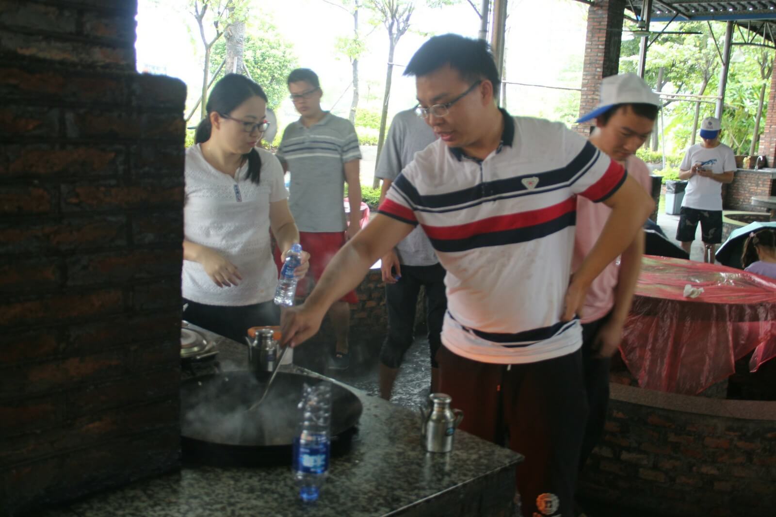 第三天,我們跟隨生物鐘醒來(lái),相比前兩天,今天的活動(dòng)時(shí)間相對(duì)寬裕,早上九點(diǎn)多起來(lái)吃過(guò)酒店特意留的早餐我們啟程去往郊區(qū)野炊,野炊自給自足,一切吃的都要自己動(dòng)手在公司我們是職員現(xiàn)在我們是廚師大家都磨拳擦掌的行動(dòng)起來(lái),洗菜的、掌勺的、打下手的、添柴火的,不一會(huì)兒一盤色香味俱全的菜擺在桌上沒(méi)多久桌上已經(jīng)是好幾道菜了有炒蛋、冬瓜湯、爆炒雞塊、南瓜片、炒青菜....,每道菜都富有不同的特色我拿起了手中的相機(jī),將這一刻留在了鏡頭之中,大家相互顯無(wú)比親近,雖然只有這短短的三天。