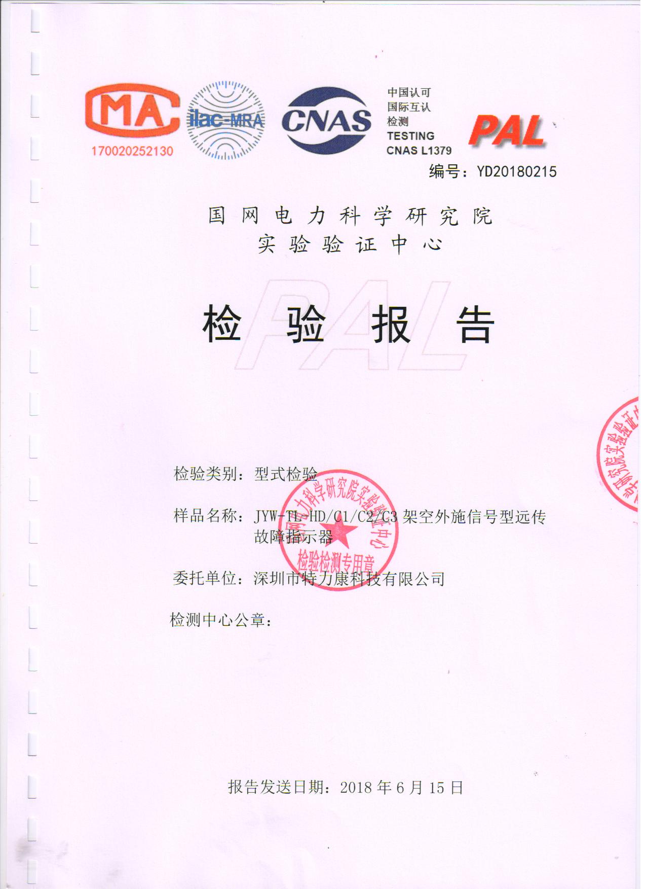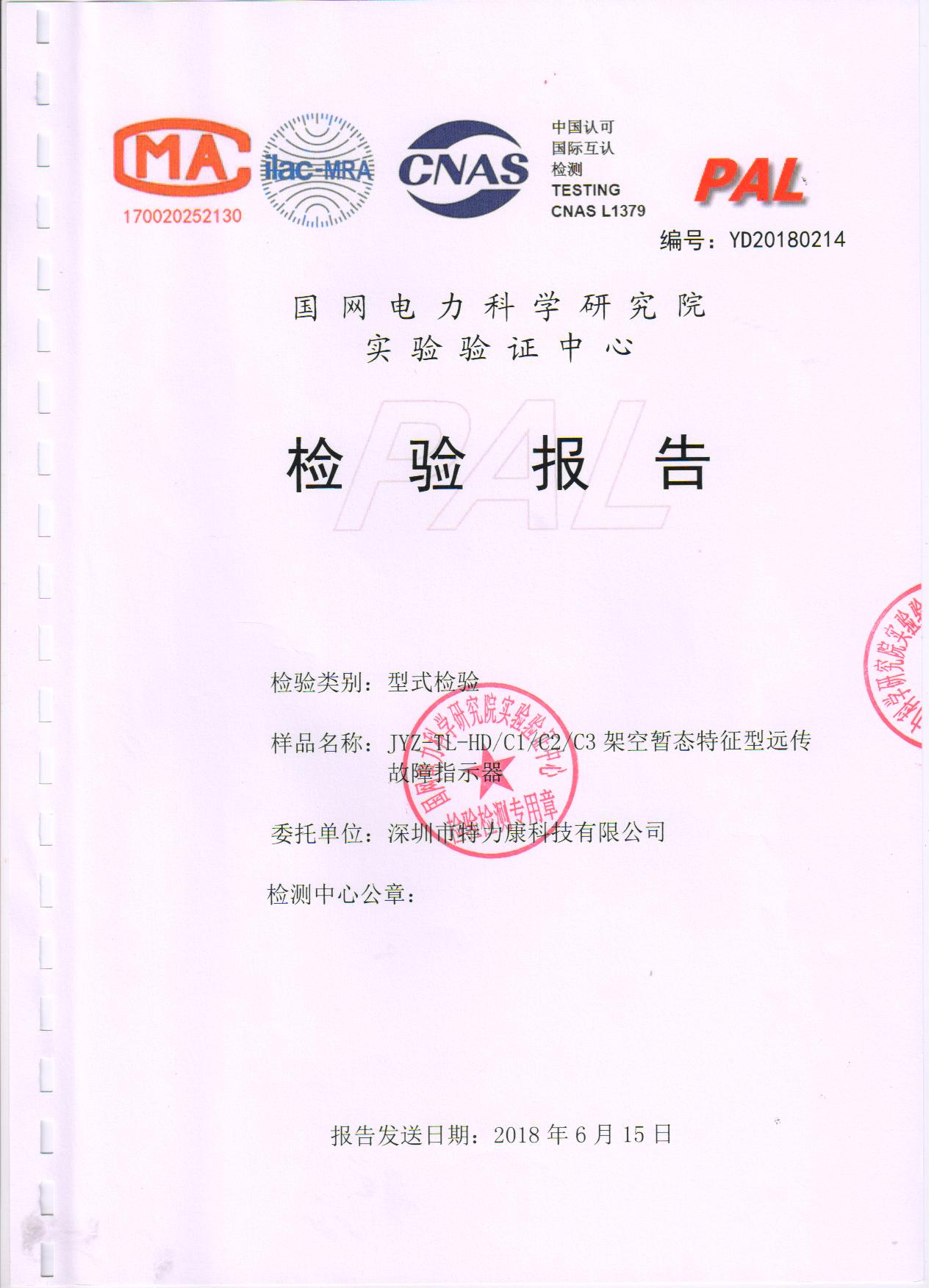 我司專注輸電線路在線監(jiān)測十二年,在智能電網(wǎng)監(jiān)測領(lǐng)域已有了不凡的地位。然而,為了更好的為電力智能化管理做出貢獻(xiàn),我司大力組建研發(fā)團(tuán)隊(duì)致力于配網(wǎng)故障監(jiān)測產(chǎn)品開發(fā),經(jīng)多年研發(fā)與掛網(wǎng)測試,于2018年1月20日,經(jīng)邀請(qǐng),攜帶我司研發(fā)的架空暫態(tài)特征型、架空信號(hào)遠(yuǎn)傳型故障指示器,前往國家電網(wǎng)電力科學(xué)研究院進(jìn)行抽檢試驗(yàn)及測試。在長達(dá)將近5個(gè)月的各項(xiàng)性能測試后,我司架空暫態(tài)特征型、架空信號(hào)遠(yuǎn)傳型故障指示器的測試結(jié)果均達(dá)到合格。因此,于2018年6月15日國網(wǎng)電力科學(xué)研究院為我司發(fā)放了相關(guān)檢測報(bào)告證明文件(型式檢測報(bào)告)。