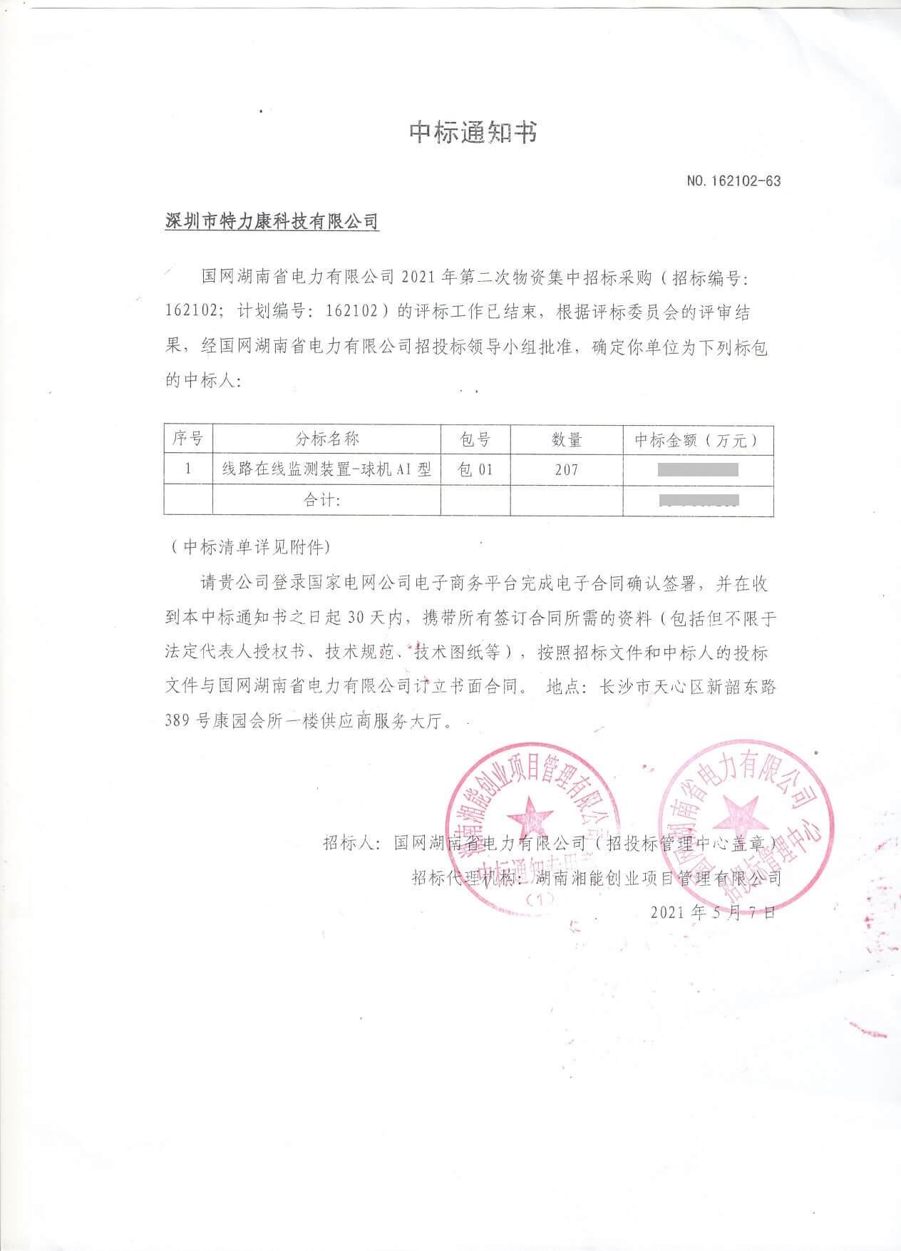 特力康中標(biāo)國(guó)網(wǎng)黑龍江送變電工程公司的2024年度第18次物資類(lèi)競(jìng)爭(zhēng)性談判采購(gòu)項(xiàng)目——慶陽(yáng)驅(qū)鳥(niǎo)器物資框 特力康中標(biāo)國(guó)網(wǎng)甘肅省電力公司省管產(chǎn)業(yè)單位2024年第五次物資競(jìng)爭(zhēng)性談判授權(quán)采購(gòu)項(xiàng)目 中標(biāo)喜訊:深圳市特力康科技有限公司成功入圍許繼集團(tuán)綜合能源公司輸電線(xiàn)路視頻在線(xiàn)監(jiān)測(cè)裝置模塊集采項(xiàng)目 中標(biāo)喜訊:特力康成功中標(biāo)國(guó)網(wǎng)重慶市電力公司渝中一片區(qū)項(xiàng)目 特力康成功中標(biāo)國(guó)網(wǎng)天津市電力公司2024年第二次?物?資招標(biāo)項(xiàng)目 特力康中標(biāo)國(guó)網(wǎng)安徽省電力有限公司蕪湖供電公司2024年3月非物質(zhì)采購(gòu)項(xiàng)目 戈壁林區(qū)的 “火情哨兵”:特力康紅外熱成像裝置守護(hù)甘肅輸電線(xiàn)路 內(nèi)蒙電網(wǎng)裝上 “舞動(dòng)監(jiān)測(cè)眼”:特力康輸電線(xiàn)路防舞動(dòng)監(jiān)測(cè)系統(tǒng)守護(hù)線(xiàn)路安全 浙江電力裝上“氣象哨兵”:特力康裝置守護(hù)電網(wǎng)應(yīng)對(duì)臺(tái)風(fēng)暴雨 蜀道巡線(xiàn)不用“爬”:特力康視頻在線(xiàn)監(jiān)測(cè)裝置守護(hù)四川輸電鐵塔 風(fēng)雪中的 “防冰哨兵”:內(nèi)蒙古電力用特力康監(jiān)測(cè)系統(tǒng)筑牢覆冰防線(xiàn) 雙軸感知護(hù)塔穩(wěn):山西電力用特力康裝置破解采空區(qū)傾斜難題 江西電力裝上 “智能防鳥(niǎo)衛(wèi)士”—— 特力康綜合激光驅(qū)鳥(niǎo)器破解湖區(qū)變電站鳥(niǎo)害難題 破解巡檢難題:貴州電力用特力康 AI 微拍裝置,精準(zhǔn)捕捉線(xiàn)路隱性隱患 精準(zhǔn)捕捉 “微氣象”:浙江電力用特力康預(yù)警系統(tǒng)筑牢電網(wǎng)氣候防線(xiàn) 守護(hù) “電力咽喉”:湖南電力投用百套特力康三跨 4G 監(jiān)控球,筑牢安全防線(xiàn) 貴州電力裝特力康電網(wǎng)架空線(xiàn)路覆冰監(jiān)測(cè)系統(tǒng),精準(zhǔn)防冰保電網(wǎng)過(guò)冬? 寧夏配電線(xiàn)路安裝了我司防外破電子化智能警示牌