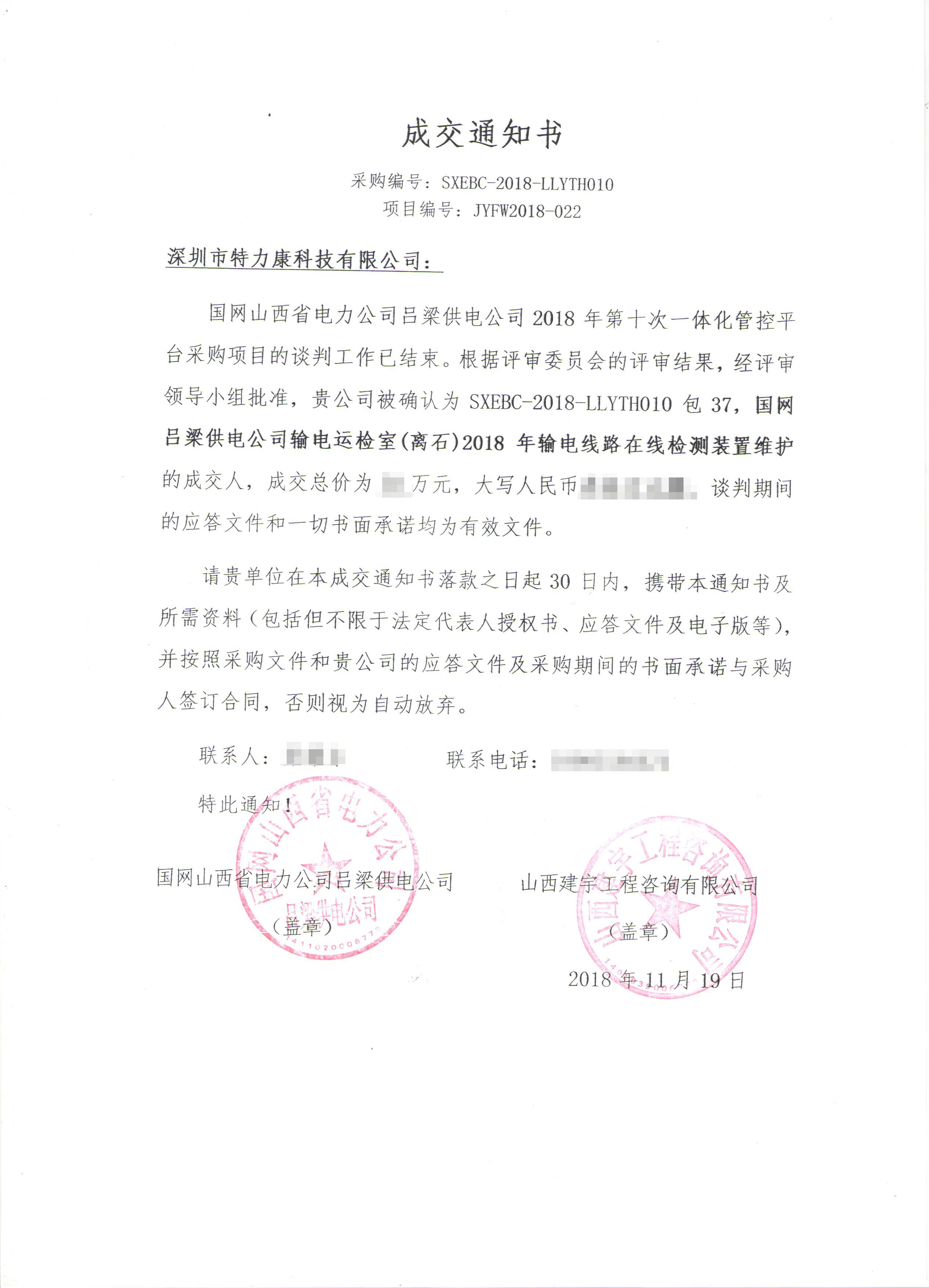 國網(wǎng)山西省電力公司2018年第十次一體化管控平臺采購項目評審工作已結束,經(jīng)評審委員會評審,經(jīng)國網(wǎng)山西省電力公司招投標領導小組批準,將評審結果公示。我司被確定為中標單位現(xiàn)將公告公示。